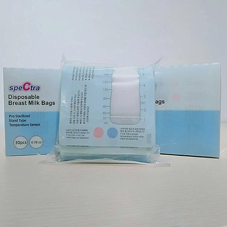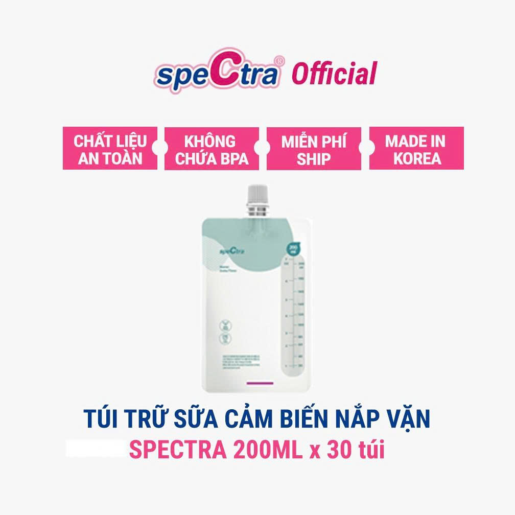Hộp 10 Túi Trữ Sữa Có Cổ Nối Nắp Vặn Spectra Cảm Ứng Nhiệt 200ml