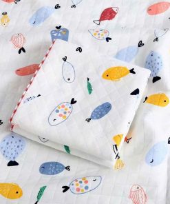Khăn tắm viền chần bông in hình êm ái cho bé, có thể dùng làm chăn đắp ấm 90x90cm