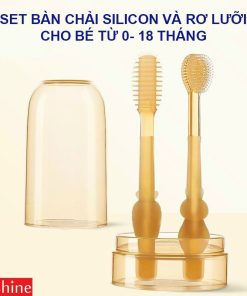 Hộp 2 rơ lưỡi và bàn chải đánh răng silicon 360 độ 2 giai đoạn màu vàng