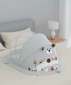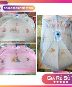Màn mùng in bông gập xếp gọn chống muỗi hình tròn có túi kéo cho bé, lố 5c