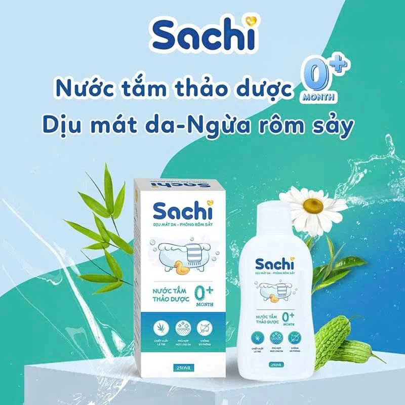 Nước Tắm Thảo Dược SACHI Ngừa Rôm Sảy, Làm Ấm Hỗ Trợ Ngăn Cảm Cúm, Cảm Lạnh Cho Bé Lọ 250ml