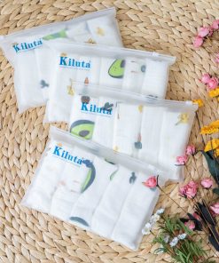 Set 5 khăn sữa muslin Win Kt 30×30 với nhiều hình họa tiết dành cho bé