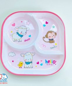 VK-Khay ăn dặm sâu lòng nhựa cao cấp in hoạt họa 3 ngăn Honper