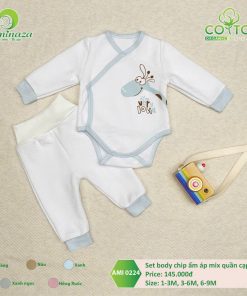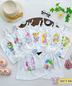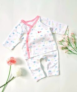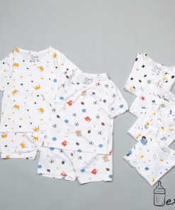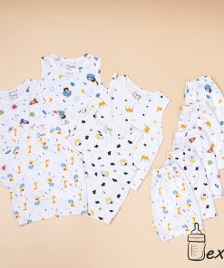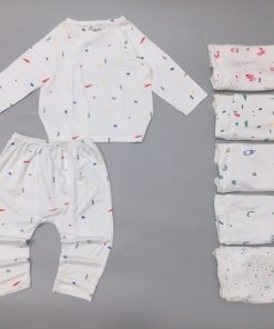 Sỉ 10 bộ dài cài xéo nền trắng in rơi thun lạnh sơ sinh Amamio