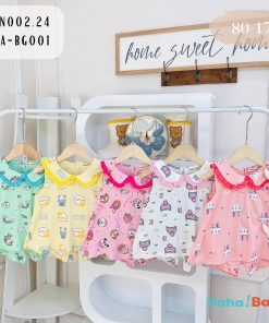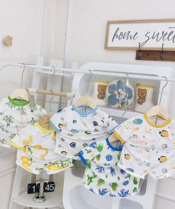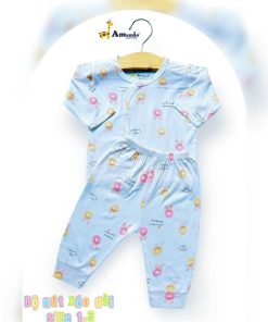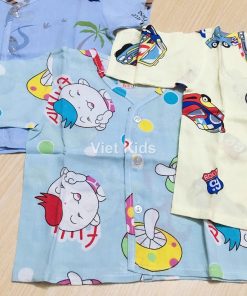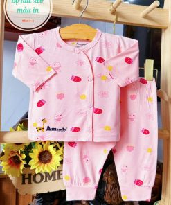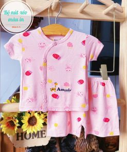 Sỉ 10 bộ dài cài xéo nền màu in rơi thun lạnh sơ sinh Amamio