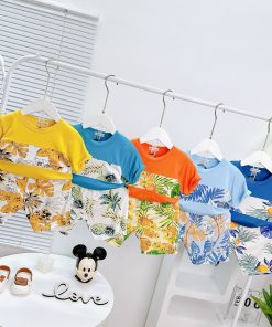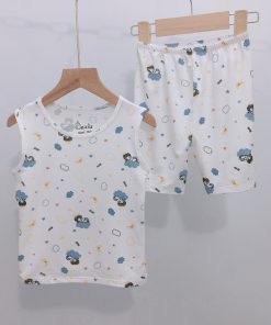Đồ bộ quần áo cộc cài vai Bexiu in rơi cotton lạnh cho bé 6-19kg