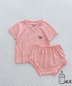 Bộ đồ cài lệch áo tay ngắn quần chip mặc tã in rơi trắng + màu cho bé sơ sinh Bexiu cao cấp