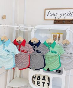 Bộ cộc Minky MK cổ sơ mi cài nút sọc dệt SMILE đại130-150 lố 15 bộ thun lạnh sài gòn