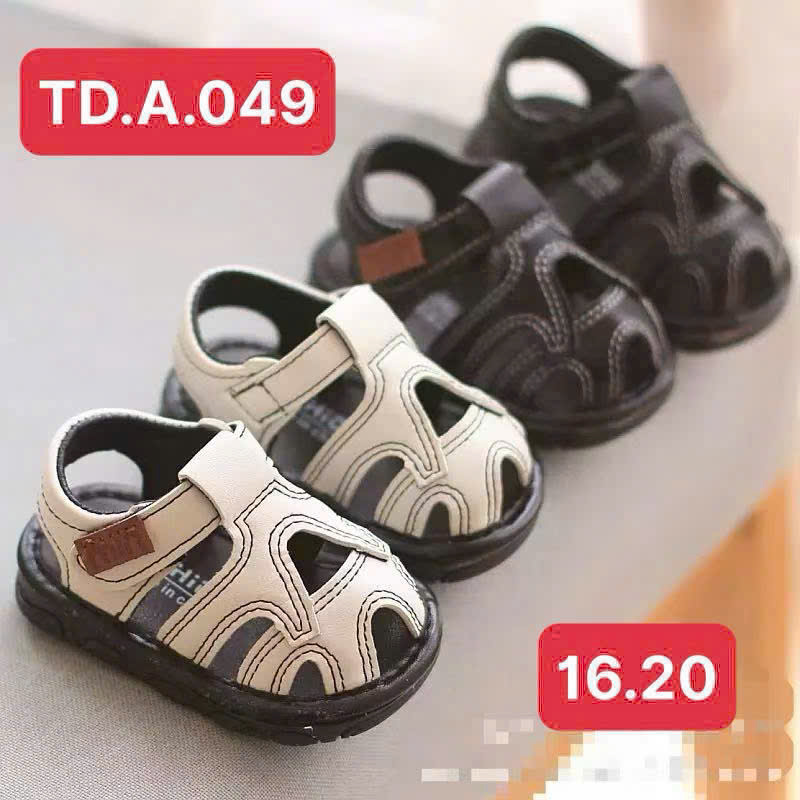 Giày kèn tập đi mũi rọ A049 cho bé 6-18 tháng dây 5 đôi size 16-20 (Còn đen)