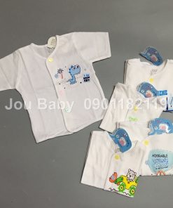 Sỉ 10 áo sơ sinh tay dài và ngắn cổ tim cài giữa trắng Jou cotton