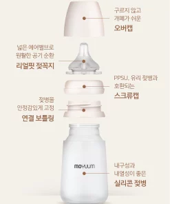 Bình Moyuum chính hãng được thiết kế thông minh với các bộ phận tách rời, dễ dàng chuyển đổi từ bình sữa sang cốc tập uống cho bé