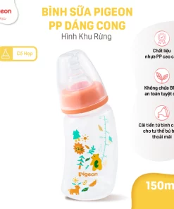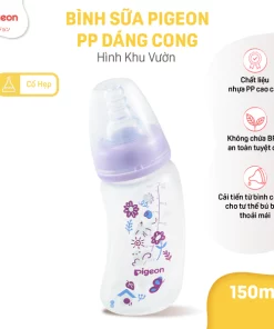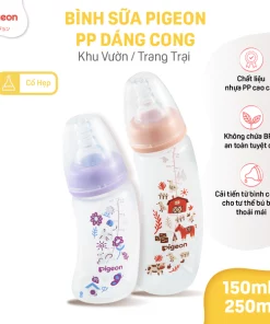 Bình sữa Pigeon PP Thân Cong Cổ hẹp 150ml/250ml cho tư thế bú bình thoải mái, giảm thiểu lượng khí trong bình: