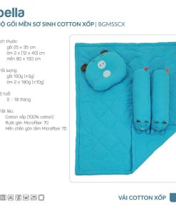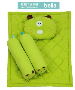 Bộ gối nệm 4 chi tiết hình thú, gồm nệm gối nằm và 2 gối ôm sơ sinh cara Bella