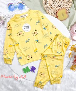 Bộ dài MK Minky vàng caro voi size đại 130-150 thun lạnh Sài Gòn lố 15 bộ