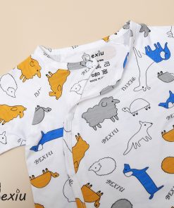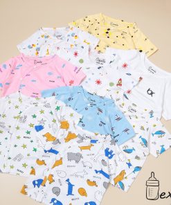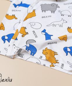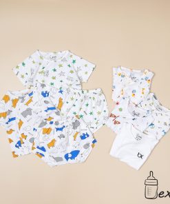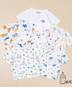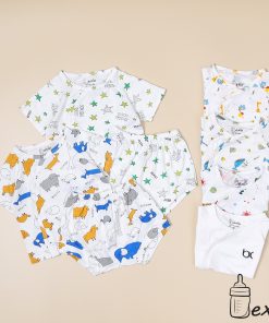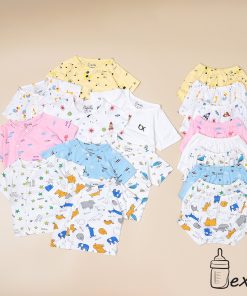 Bộ đồ cài lệch áo tay ngắn quần chip mặc tã in rơi trắng + màu cho bé sơ sinh Bexiu cao cấp