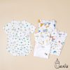 Bộ đồ cài lệch áo tay ngắn quần chip mặc tã in rơi trắng + màu cho bé sơ sinh Bexiu cao cấp
