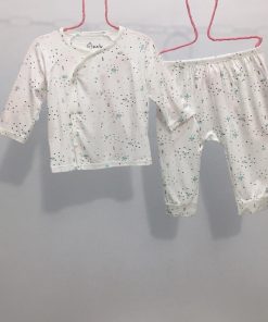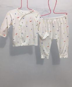 Bộ đồ quần áo sơ sinh cài lệch tay dài in rơi Bexiu