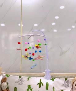 Các mẹ có thể treo vào nôi, cũi, hoặc chăng dây ở bất cứ đâu mà bé nằm để treo đồ chơi lên cho bé ngắm nhé.