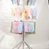 – Cây phơi quần áo 3 tầng với 3 giá phơi đồ cực kì chắc chắn và tiện dụng, có thể gập gọn khi không sử dụng, móc có thể tháo rời và gắn ở bất cứ vị trí nào của thanh treo.