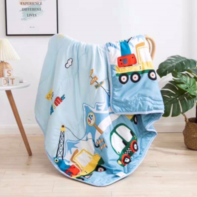 Chăn cotton đũi 2 mặt chần gòn hoạt hoạ