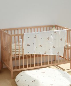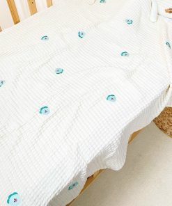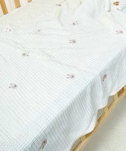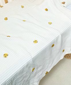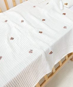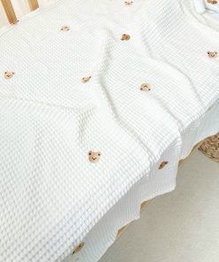 Chăn tổ ong Waffle thêu thỏ gấu xuất Hàn 90x120cm