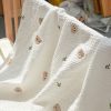 Chăn tổ ong Waffle thêu thỏ gấu xuất Hàn 90x120cm