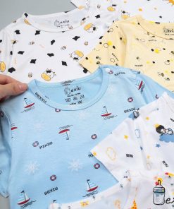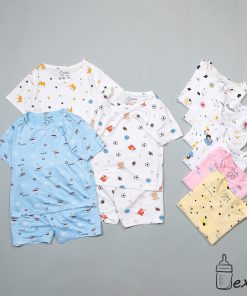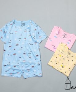 Đồ bộ quần áo cộc cài vai Bexiu in rơi cotton lạnh cho bé 6-19kg