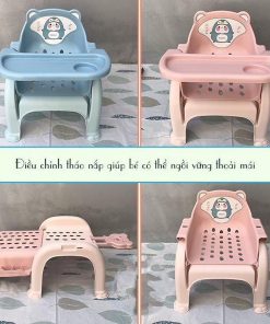 – Khay ăn có thể điều chỉnh thảo lắp dễ dàng, gần với 3 mức độ khác nhau giúp bé có thể ngồi vững và thoải mái nhất.