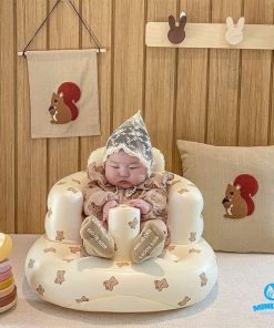 Ghế hơi tập ngồi và tắm cho bé mẫu in gấu thỏ phong cách Hàn Quốc