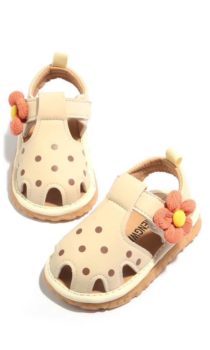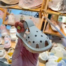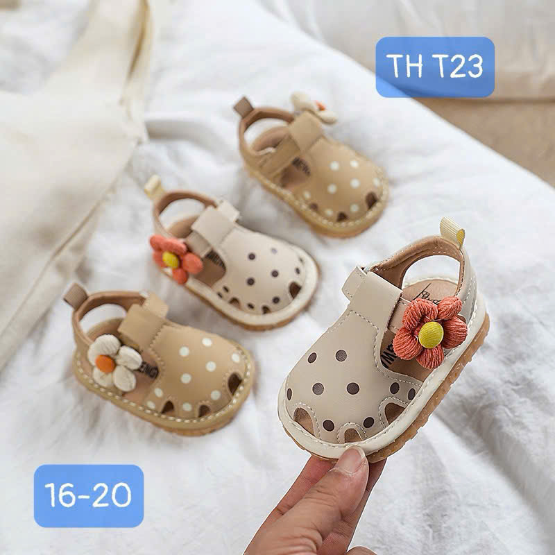 Giày kèn tập đi mẫu hoa chấm bi T23 cho bé gái 6-18 tháng dây 5 đôi size 16-20( còn be+nâu)