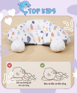 – Gối đầu: có dây rút để điều chỉnh chiều dài, chiều rộng của Gối và Bông phù hợp để làm gối chặn đầu cho bé.