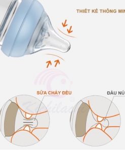 ⍣ Hệ thống van thông khí điều chỉnh áp suất không khí bên trong bình và điều tiết lượng sữa chảy ra theo nhịp điệu do bé bú, hạn chế tình trạng đầy hơi và khó tiêu của bé.