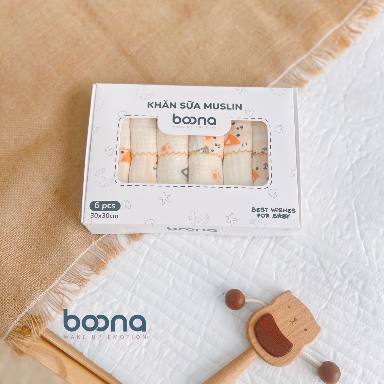 Hộp 6 khăn sữa muslin Boona 30x30cm