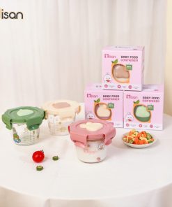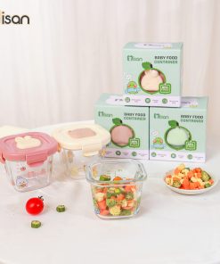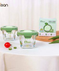 VK-(Nắp lock)Hũ thủy tinh đơn dùng để trữ đông bảo quản đồ ăn dặm hình vuông tròn Misan 230ml