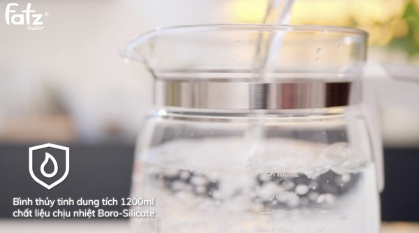 Thiết kế hiện đại, tiện lợi: Thân bình bằng thủy tinh cao cấp có thể chịu được nhiệt độ cao, trong suốt giúp mẹ có thể quan sát được mực nước bên trong dễ dàng. Ngoài ra, bình có thể chứa đến 1200ml nước, đây là lượng nước phù hợp mà cả gia đình có thể sử dụng vừa pha sữa, pha trà, ngũ cốc.