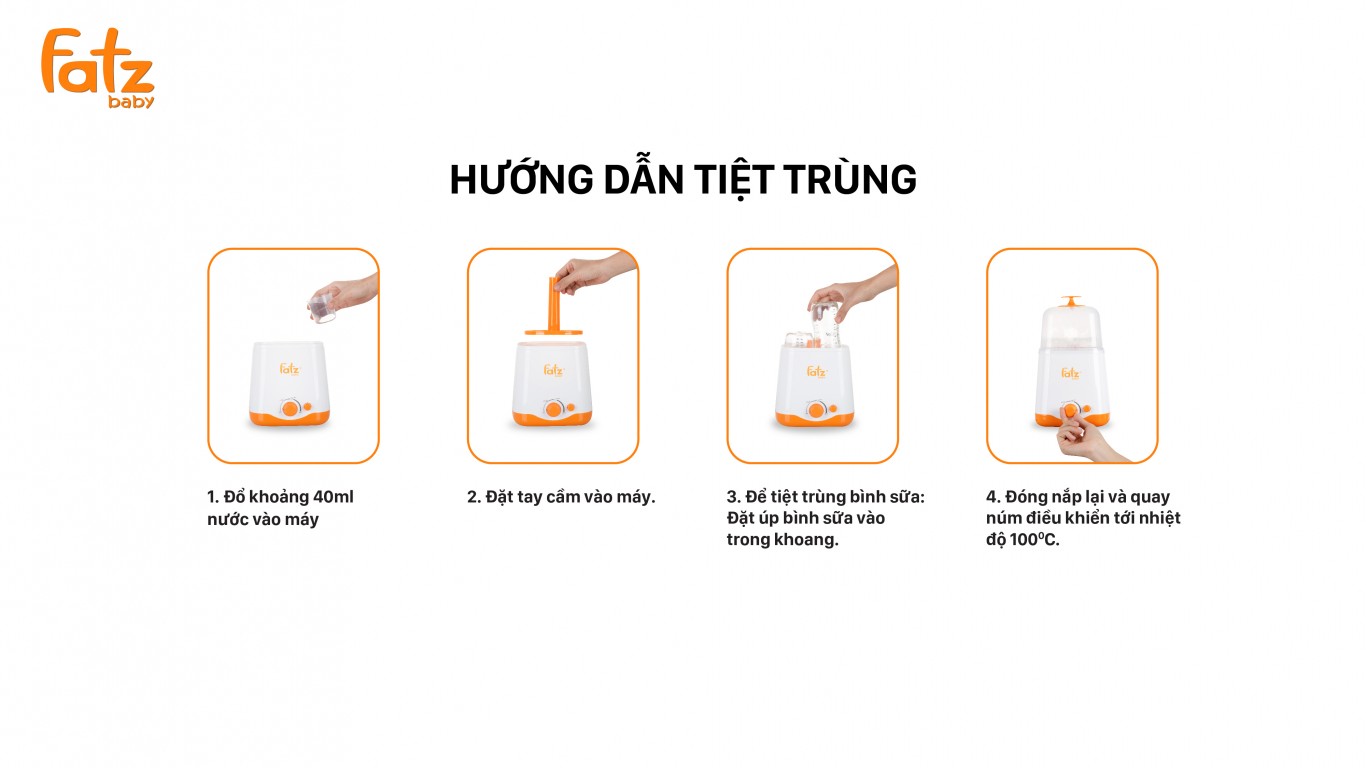 - Tiệt trùng bằng hơi nước: Đây là phương pháp khử trùng hơi nước bằng điện hiện nay, được các mẹ tin dùng. Máy được thiết kế tiệt trùng ở nhiệt độ phù hợp, không làm biến chất các vật liệu của bình sữa.