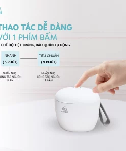 Chỉ từ 3 tới 9 phút, ba mẹ có thể tiệt trùng sạch sẽ các vật dụng của bé như ti giả, gặm nướu hay các đồ dùng cá nhân nhỏ khi ở bất cứ nơi đâu mà không phải vất vả tìm nước sôi tiệt trùng như phương pháp truyền thống
