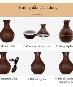 Máy xông tinh dầu vân gỗ hình lọ hoa