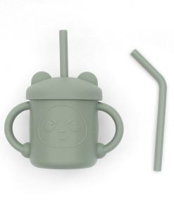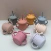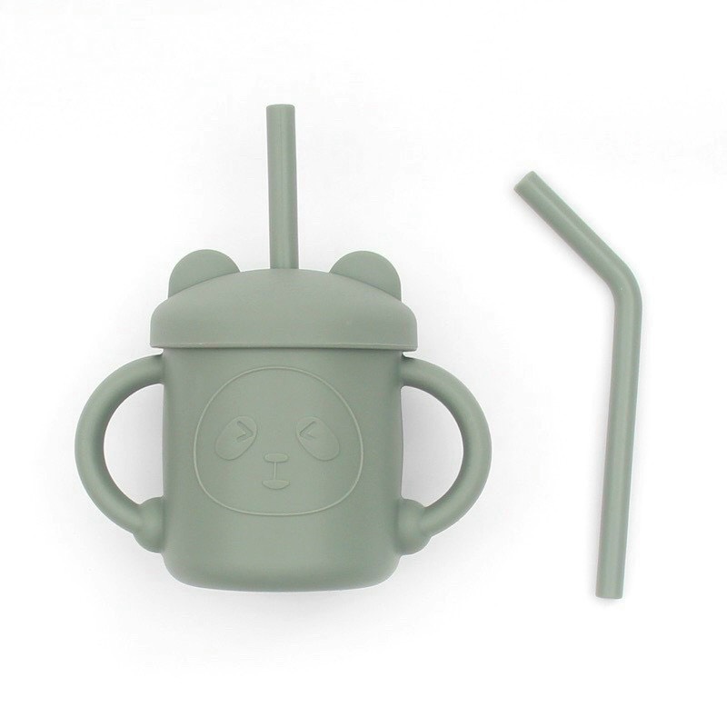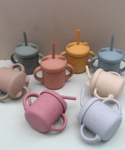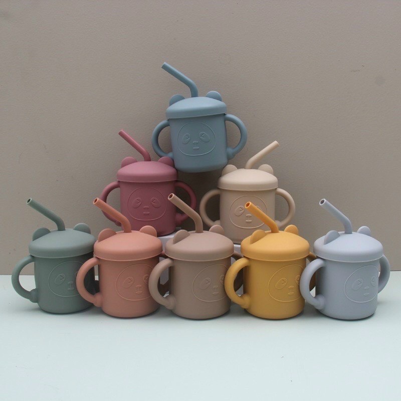 Set cốc tay cầm có nắp và ống hút bằng silicon chống đổ