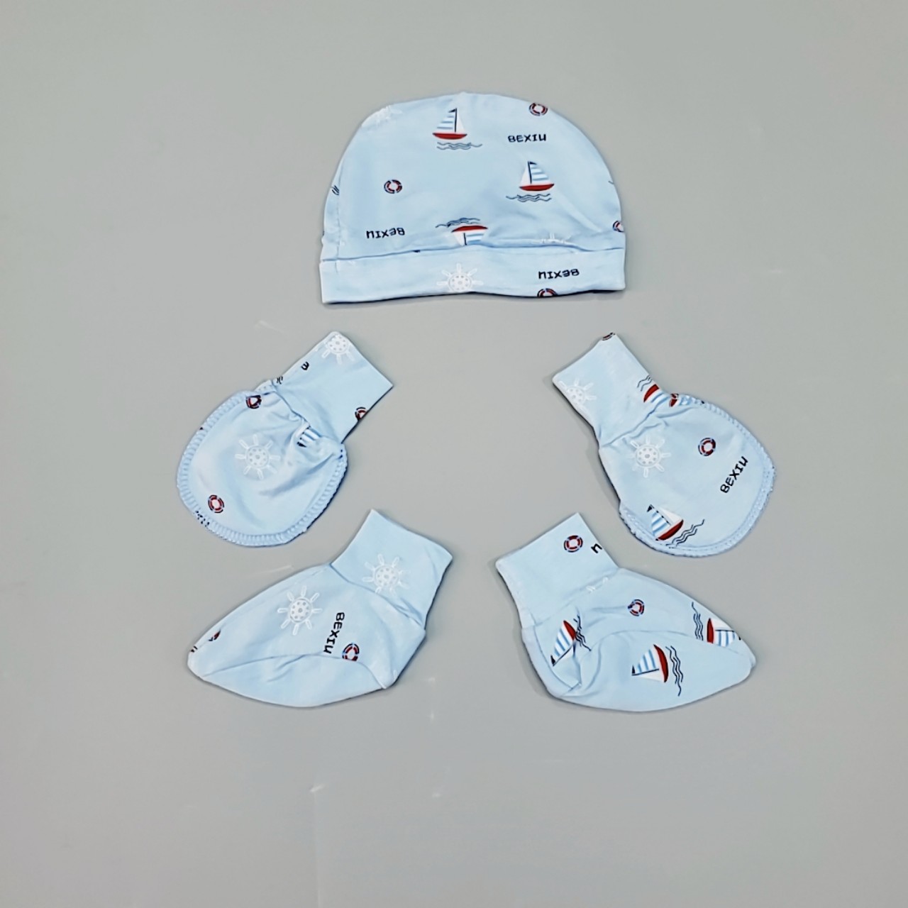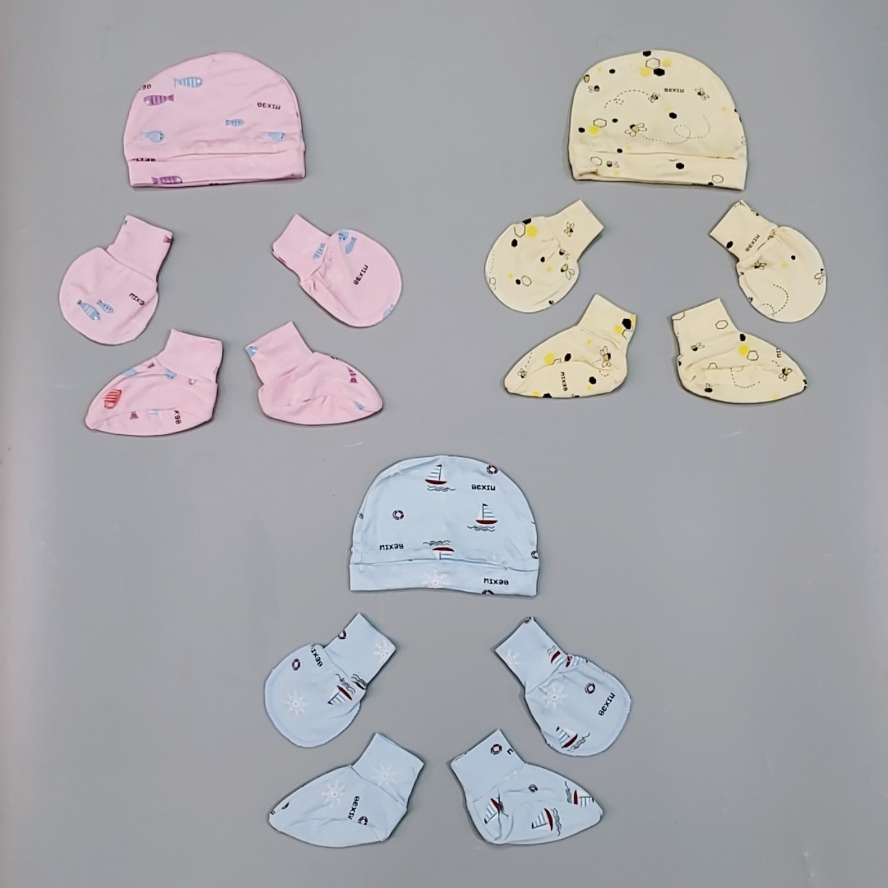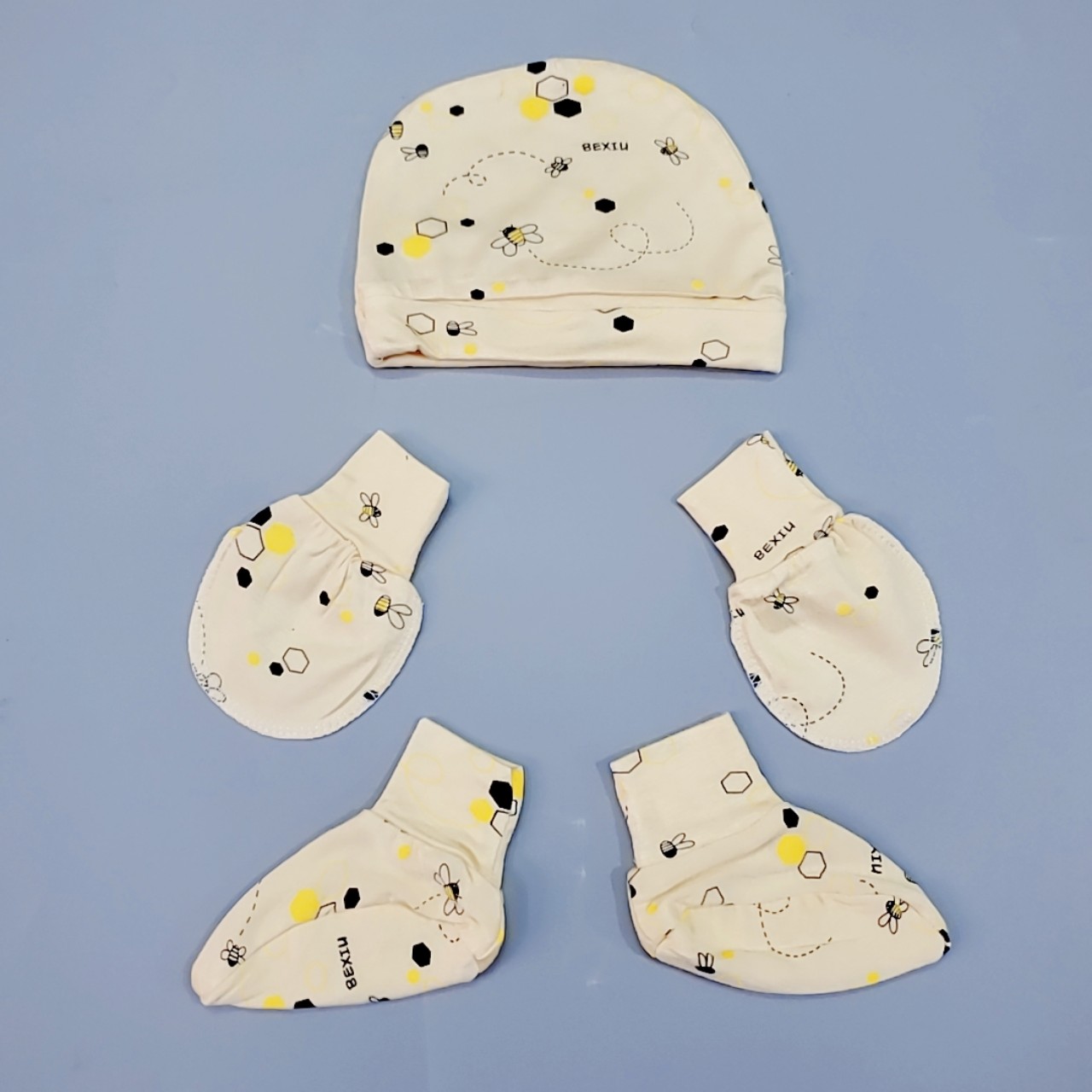 Set nón bao tay chân cao cấp Bexiu cotton lạnh 4 chiều cho bé
