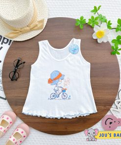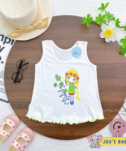 sỉ 10 áo sát nách viền bèo bé gái JOU cotton