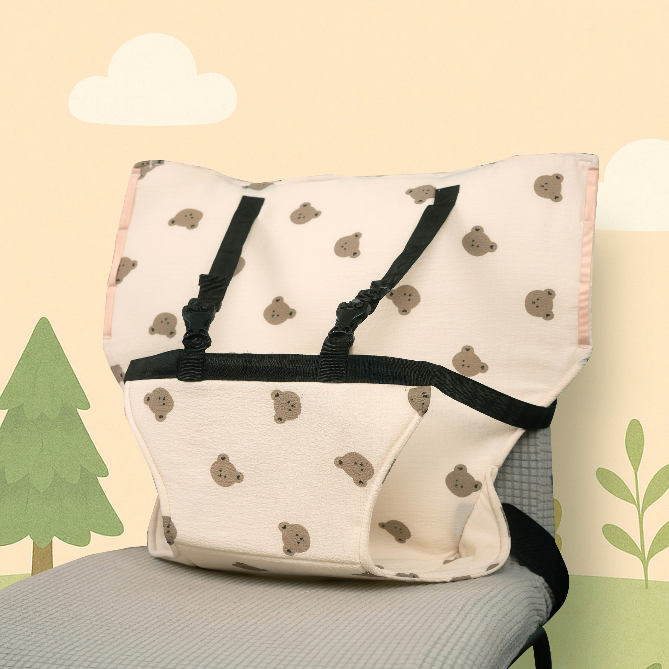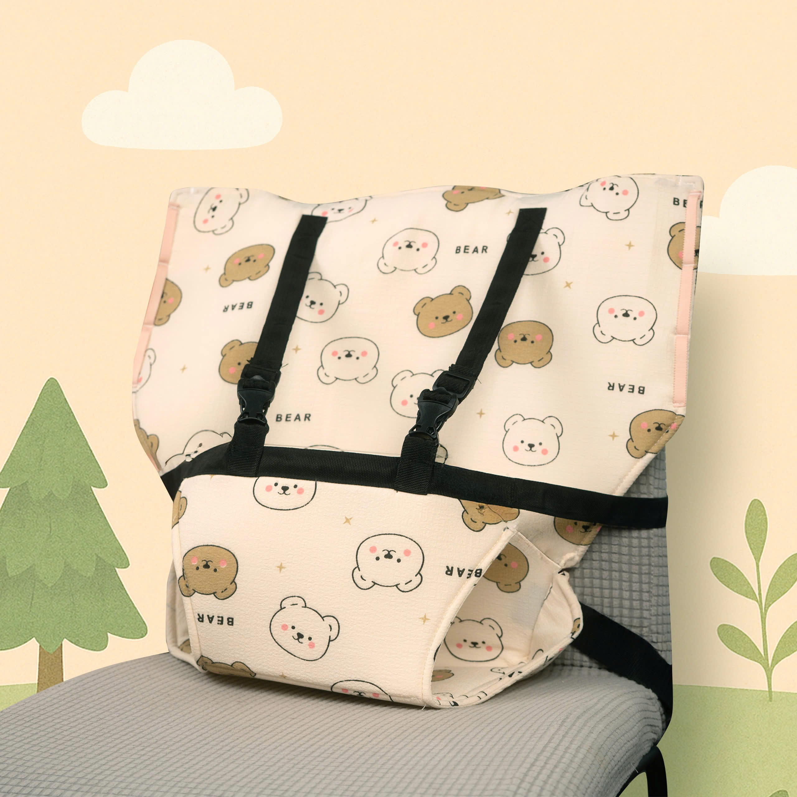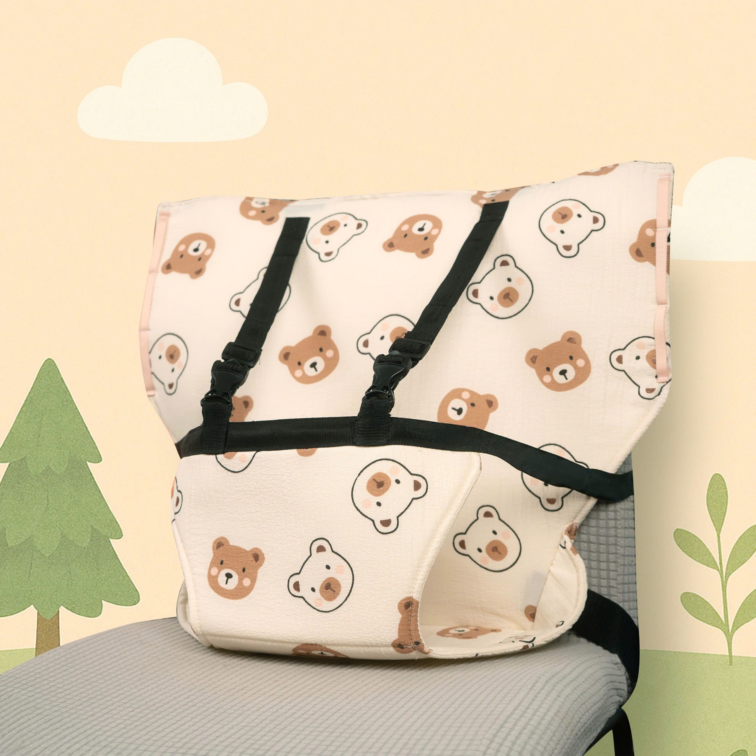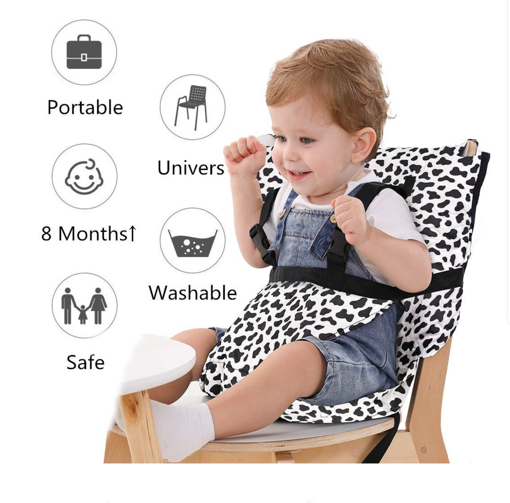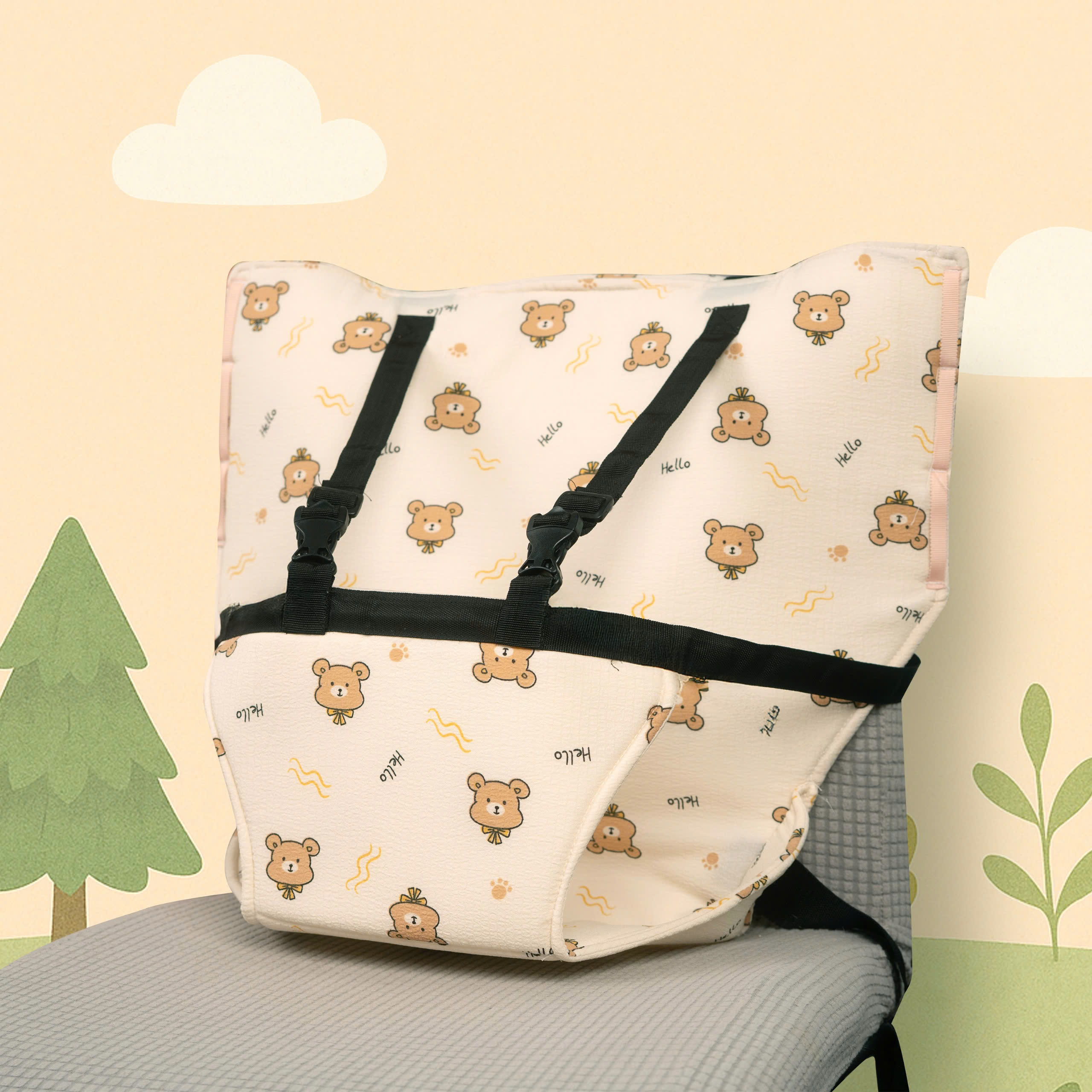* Bé có thể ngồi trên ghế người lớn, phù hợp với các loại ghế phổ thông trong gia đình.